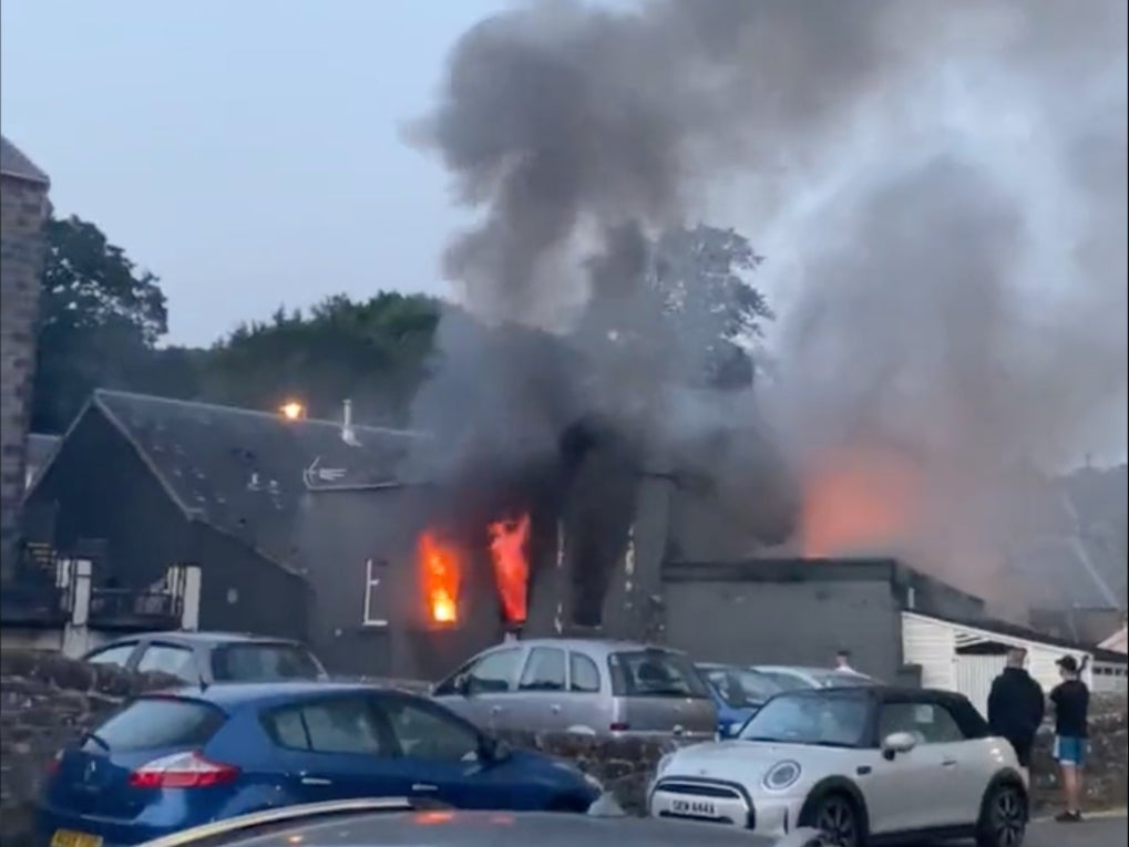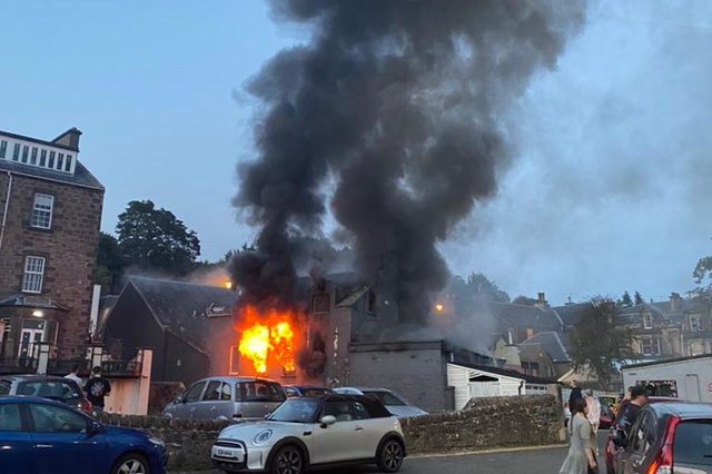 Fire crews raced to Nicks on Henderson Street in Bridge of Allan near Stirling after the alarm was raised at around 815pm on Saturday August 28. Dramatic footage taken from the scene has shown the eatery completely engulfed in flames. The devastated celebrity chef was spotted at the scene of the fire at Nicks in Bridge of Allan Stirlingshire last night.